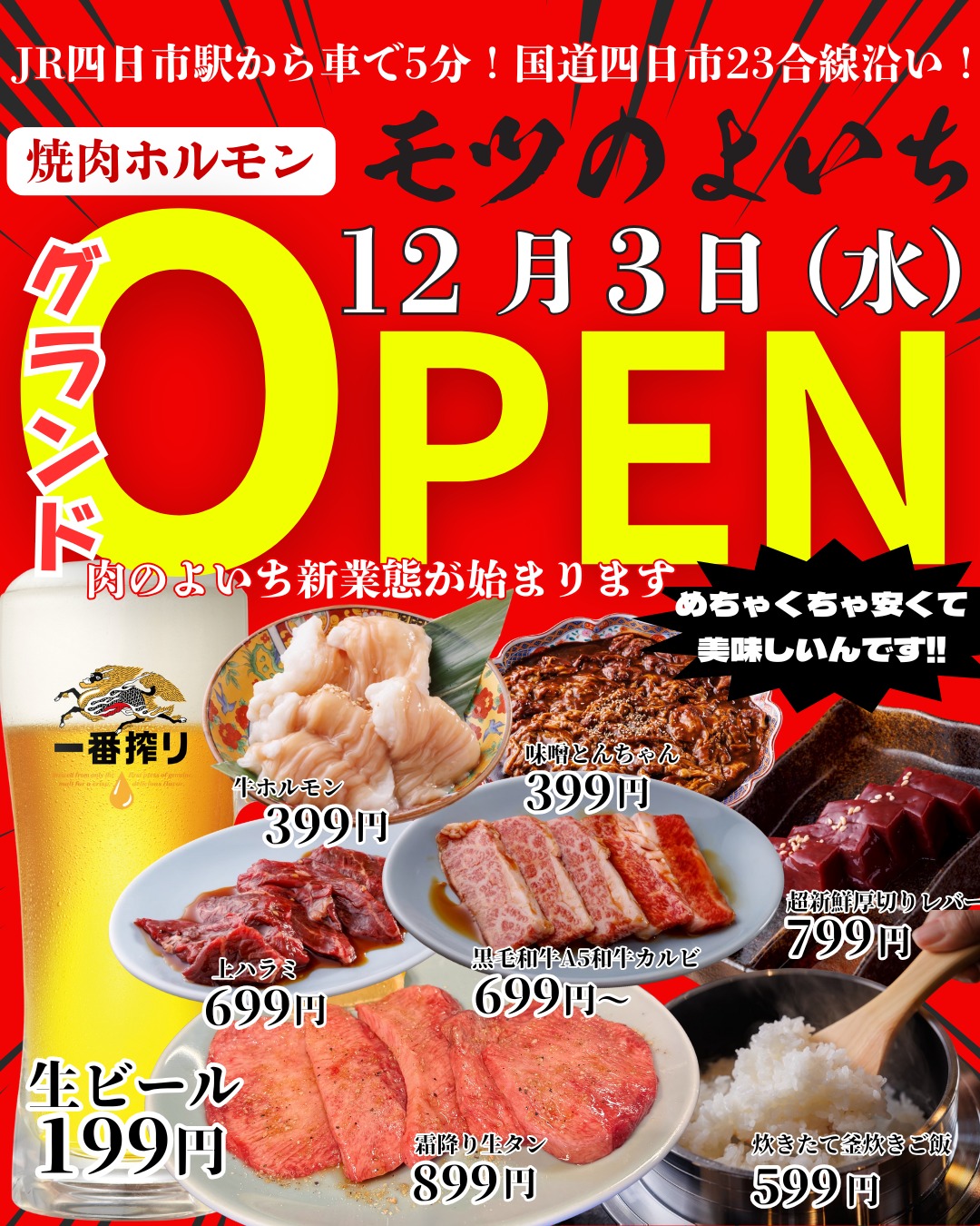 いつも「焼肉ホルモン モツのよいち」をご利用いただき誠にありがとうございます。